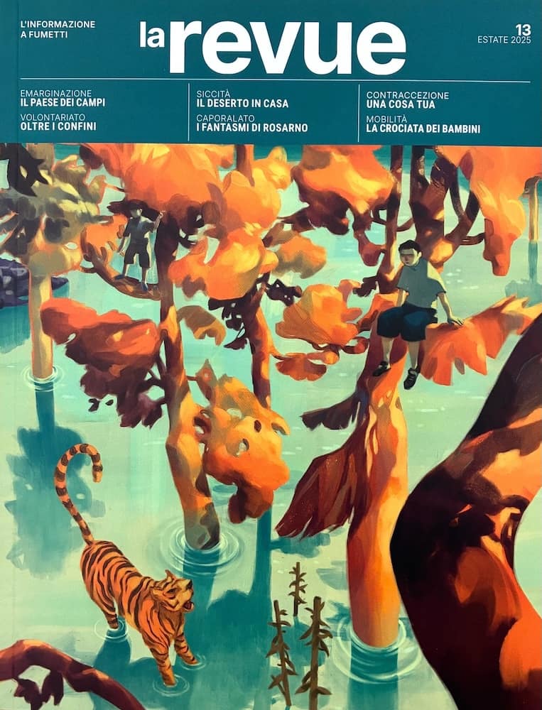 Dal 2022, La Revue è una voce unica nel panorama editoriale italiano: un trimestrale antologico dedicato a inchieste e reportage a fumetti sui temi cruciali della nostra società. Argomenti che ci toccano ogni giorno e che troppo spesso il giornalismo tradizionale trascura. Una rivista libera e indipendente, capace di dare spazio a un gruppo di autori originale e variegato come non si vedeva da decenni in Italia.