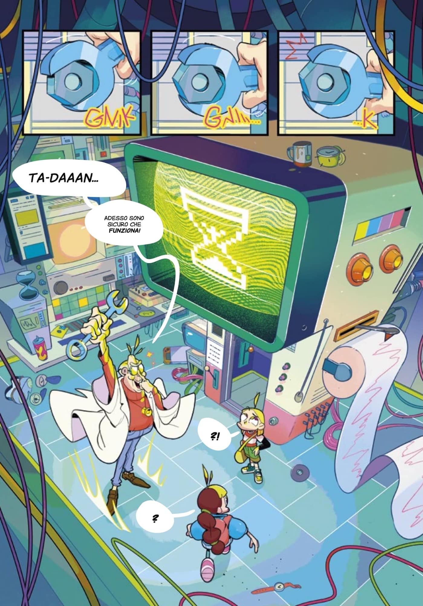 Gli adulti, che perditempo! Soprattutto quando si presentano sotto le sembianze di un nonno genialoide che si diverte a costruire improbabili invenzioni che, fortunatamente, solo raramente funzionano. Come, per esempio, la sua nuova macchina del tempo. Marta e Jacopo scopriranno a loro spese che quel “raramente” è un fattore molto importante, perché per una volta l’idea del nonno ha veramente funzionato e che, sappiatelo e ricordatevelo bene, con il tempo non si scherza. Cose apparentemente scollegate, come la passione per le muffe di uno scienziato inglese del secolo scorso e l’identità del primo uomo sulla Luna (vi ricordate il suo nome?), vengono sconvolte dal passaggio del vulcanico nonnino. E toccherà a Marta e Jacopo rimettere le cose al loro posto. Davide La Rosa e Francesco Matteuzzi ai testi e Mattia Di Meo ai disegni, battezzano una svolta del progetto Comics&Science, con una storia della nuova serie KIZ, rivolta a un pubblico decisamente più giovane del solito. Ma scommettiamo che piacerà anche al nonno?